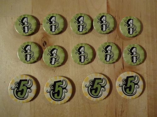 -1 planche de pions de victoire aux couleurs de Cthulhu (20 points représentés par 4 jetons 5PV et 10 points en 10 jetons 1PV)